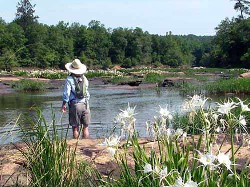 The results are quite unique - a rocky, mountainous area adjacent to the sandy coastal plain. The flora and fauna from both regions flourish. Spanish moss and needle palms grow adjacent to wild azaleas and rhododendron. Among numerous rare species, you also find Micropterus cataractae, the shoal bass.