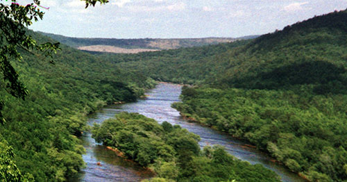 Below the city of Atlanta, the Flint flows through a swampy, riparian floodplain that helps cleanse and purify the river. About 50 miles south of Atlanta, the Flint begins to drop through the lower piedmont and cuts through the broad Pine Mountain ridge formed from 550-million year-old crystalline rock forced to the surface by a geologic fault 30 to 50 million years ago.