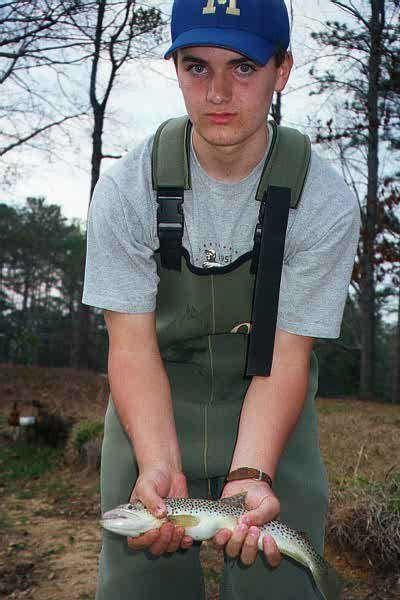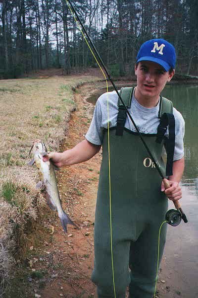 March 20 - Callaway Gardens - 1 pm - Fished with Andrew W, and two of his buddies, Tyler & Eric. The trip was a 13th birthday present for Andrew. Must I admit I grimaced a bit when told clients would be young teens, but lemme tell you, Andrew was a fisherman. A very nice cast, excellent technique, patience, and a great attitude. (Starting baseball soon up in Dallas, I bet he's good at that, too). Tyler had thrown the fly some too, but Eric was a novice. By the end of the day his cast looked like a picture - these guys were all right!Took a mixed bag of fish, including bass, bluegill, shellcracker, redbreast, catfish, brook trout, and catfish. Plus something big that Tyler hooked on a little green san jaun worm, buzzed out all his flyline & was into the backing in a jiffy. And then the flyline/backing knot popped - I managed to chase after and retreive it just before the water come over my waders as the fish stopped as soon as the line went slack and he'd run parralel to the shore. Unfortunately, the fish popped off as soon as I started to handline him back in. Ooooh, he was big! We'll get him next time, Tyler.