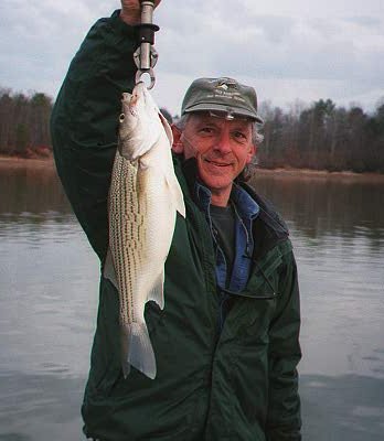January 17 - West Point Lake - 7:00 am - Fished with Norman P. & Paul H. out of Highland Marina. Hunting gull activity, we headed down to mouth of Whitewater. Bait on the fish finder so we cast a bit. With sinking line and weird little white muddler, I took a 5 lb hybrid and then a small white bass. The hytbrid was a blast, but he was our only good fisd for ther morning.