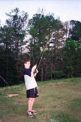 April 5 - Callaway Gardens - 3 pm - Fished Martin Lake with Steve W. and his son Michael who'd come down from Boston to learn fly-fishing. I think they did!! They'd gone out Sundy and caught lots of bluegill on Hummingbird. We added quite a few more, plus bass, and a couple of big catfish. Lookout, you Massachusett fish.