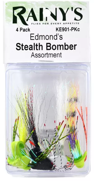 *There are a number of knock-off versions being sold online, but I do not recommend any of them. Typically they lack the proper proportions, and do not have the same action as the original. Many use inferior hooks and are not durable ties. Rainy's Stealth Bomber typically retails around $6 and Solitude's Covert Mission version at about $3. You might save a buck with the knock-offs - they may still work sometimes, but not nearly as well. Buy the real thing, or call me and I'll tie some just for you.